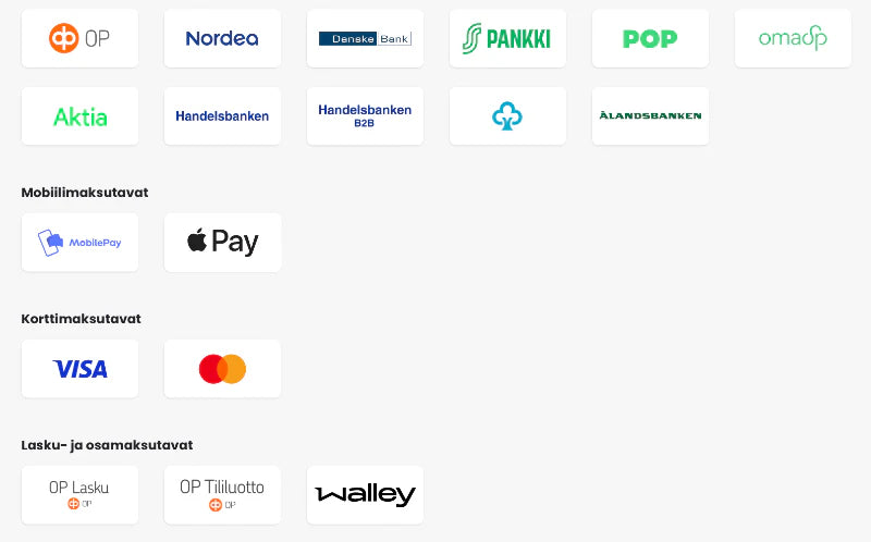 Du hittar alla villkor för betalningsmetoder här: paytrail.com/kuluttaja/tietoa-maksamas